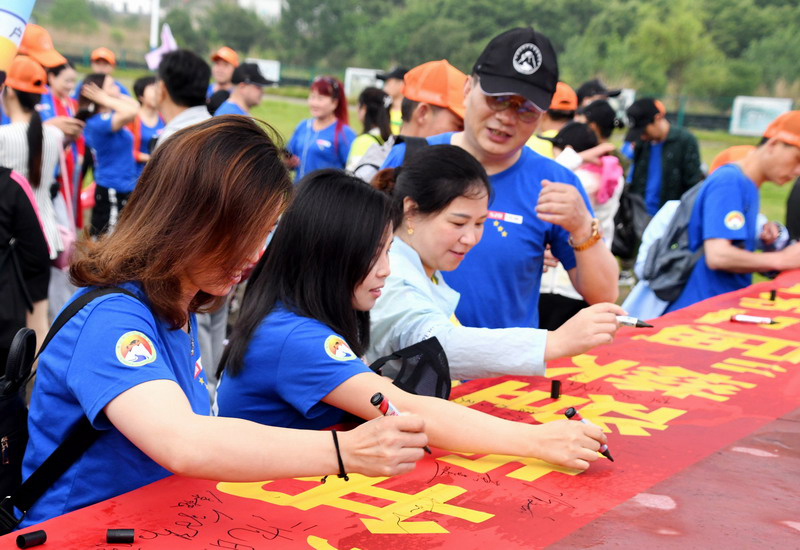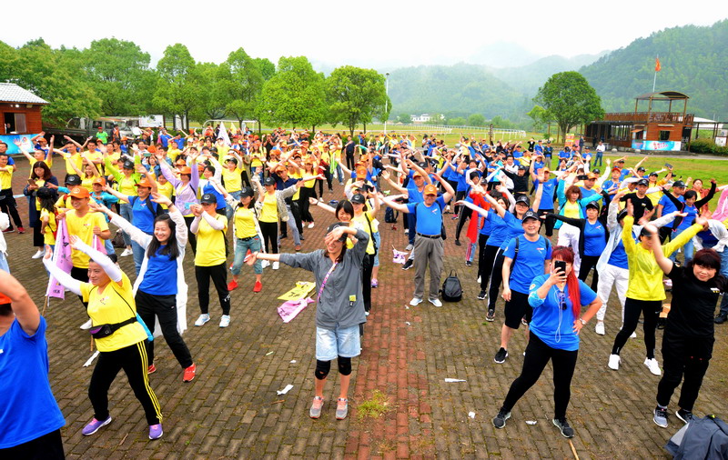 是日晨起,夏雨骤停,活动主场地白马潭景区水吼观光园云渡远山、雾漫近水,气温宜人,风景如画。千名户外活动爱好者云集白马潭草坪户外旅游演艺广场,在“5.20”绿色公益毅行横幅上签名。 潜山水吼“徽姑娘”农家乐舞蹈队,为大家表演了乡情浓郁的舞蹈。活动主办方还特别安排了台上台下“千人体操”互动环节,伴随节奏优美的主题音乐,满场舞姿翩翩,活力飞扬,激情洋溢。
